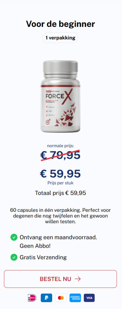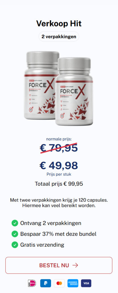 Of je nu actiever wilt zijn, je dagelijkse prestaties wilt verbeteren of gewoon meer kracht wilt voelen – Force X kan je helpen. Echte mannen in Nederland vertrouwen al op Force X en voelen elke dag het verschil!